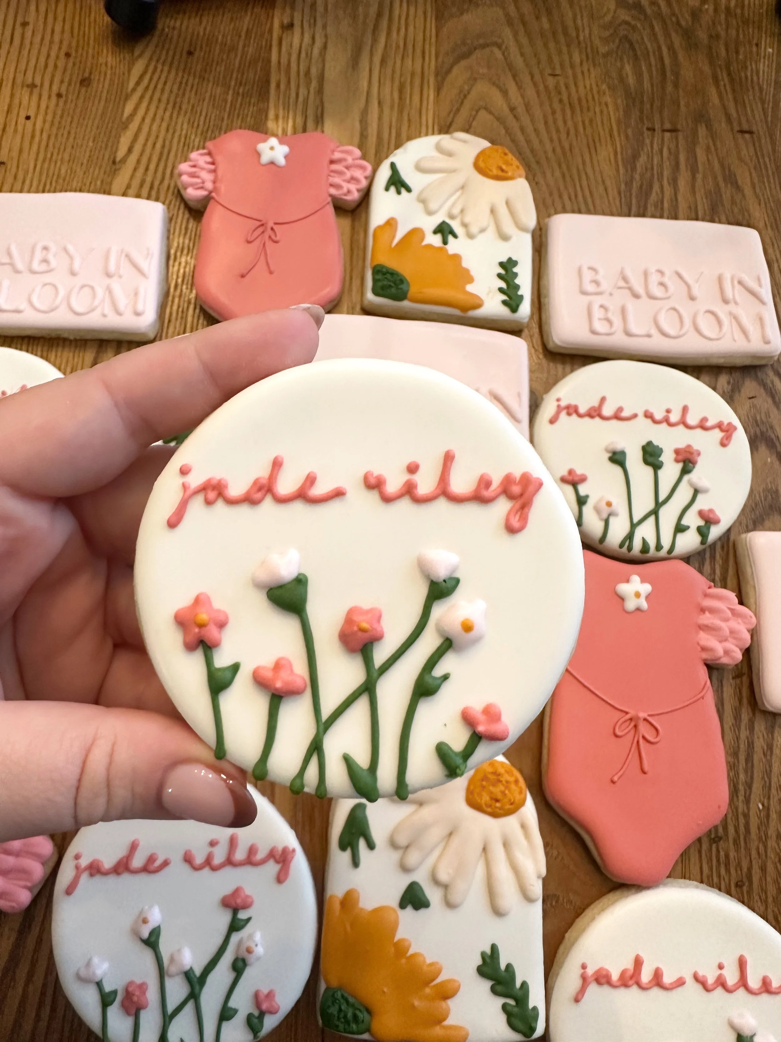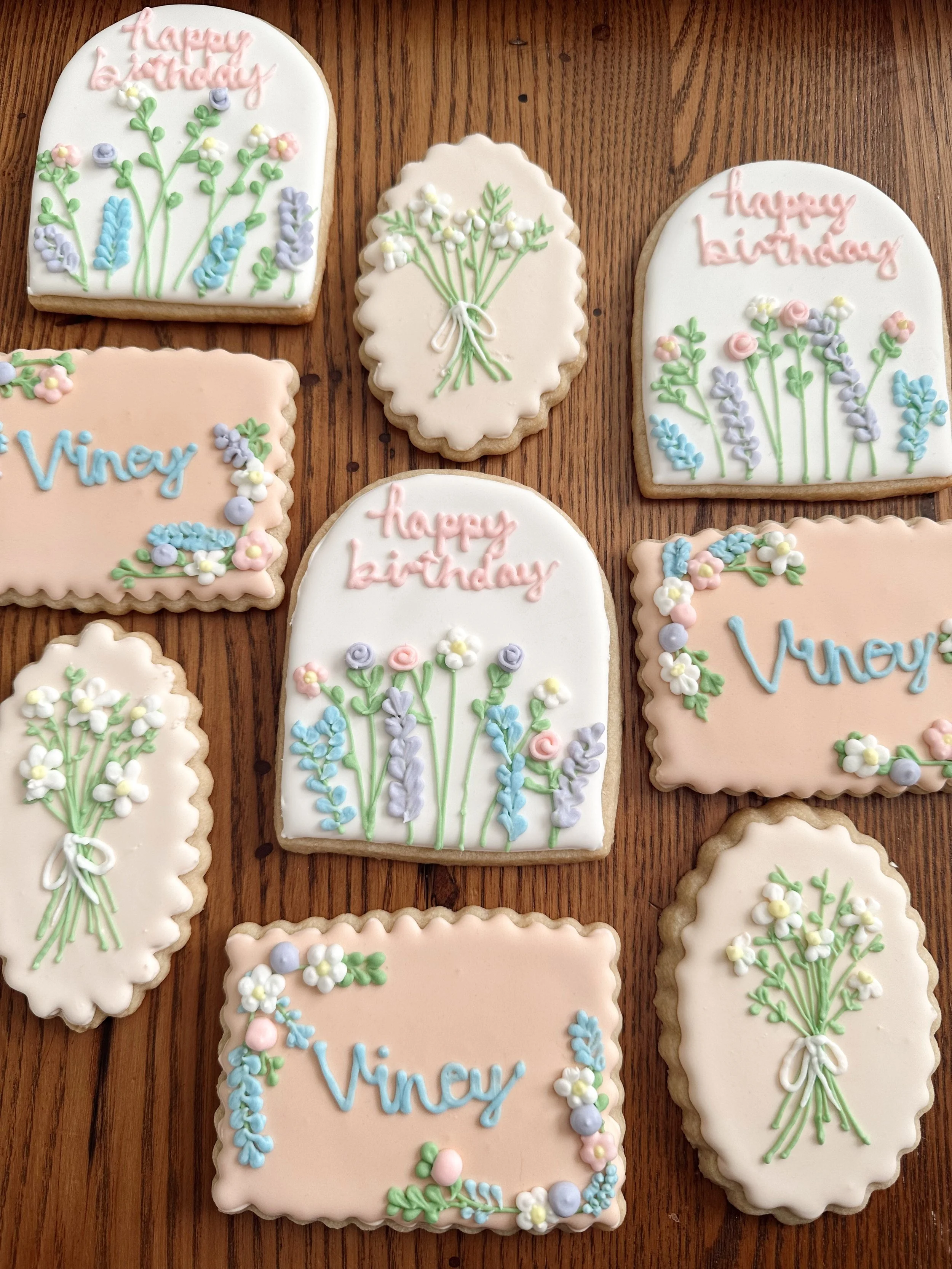 Custom Sugar cookies are a vanilla cookie with a vanilla royal icing. Cookies are $50 a dozen with a minimum of 2 dozen per order. All cookies come individually wrapped with a Crumbs Gone Wild sticker on the back.